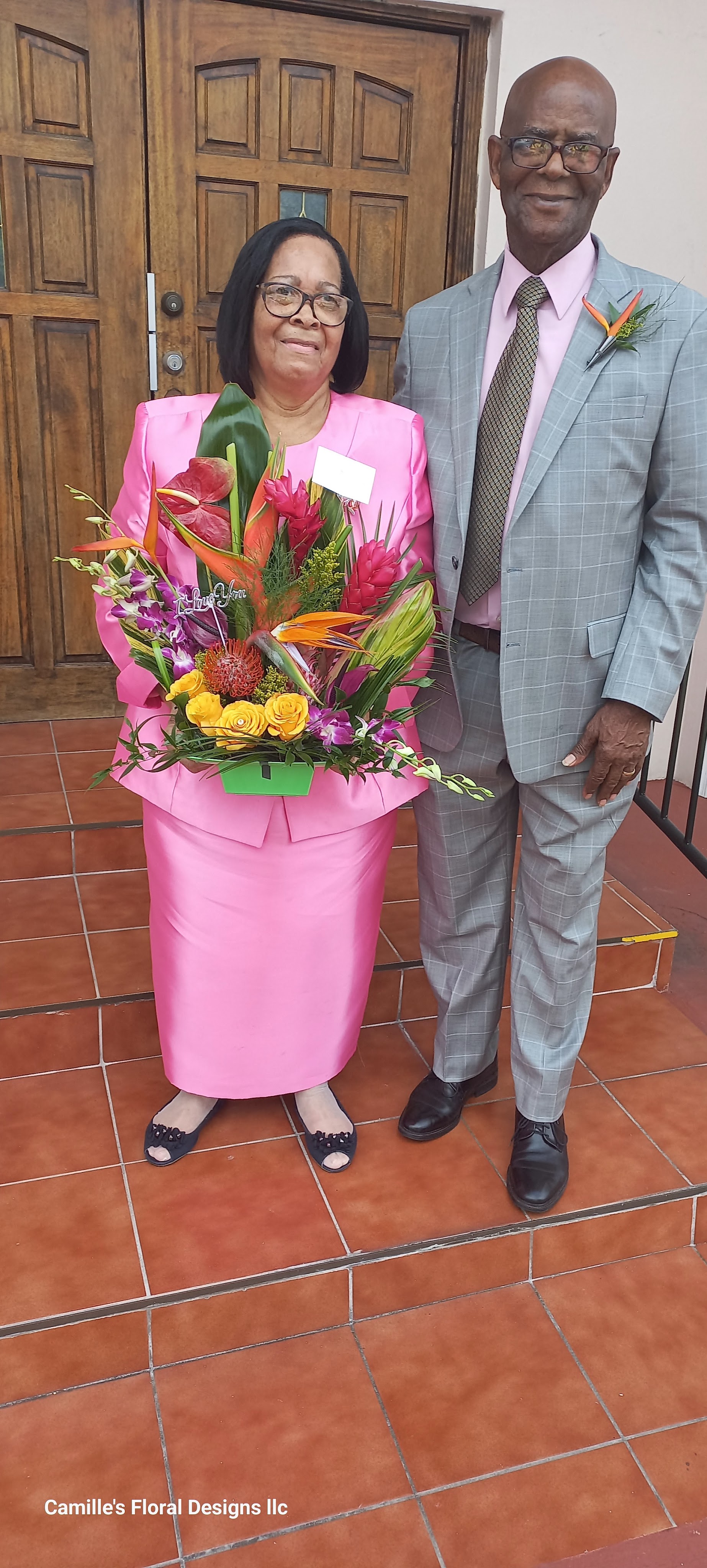 This beautiful large mixed tropical arrangement was created for a special wedding anniversary. Price includes taxes and delivery fees. We deliver to Miami-Dade and broward counties