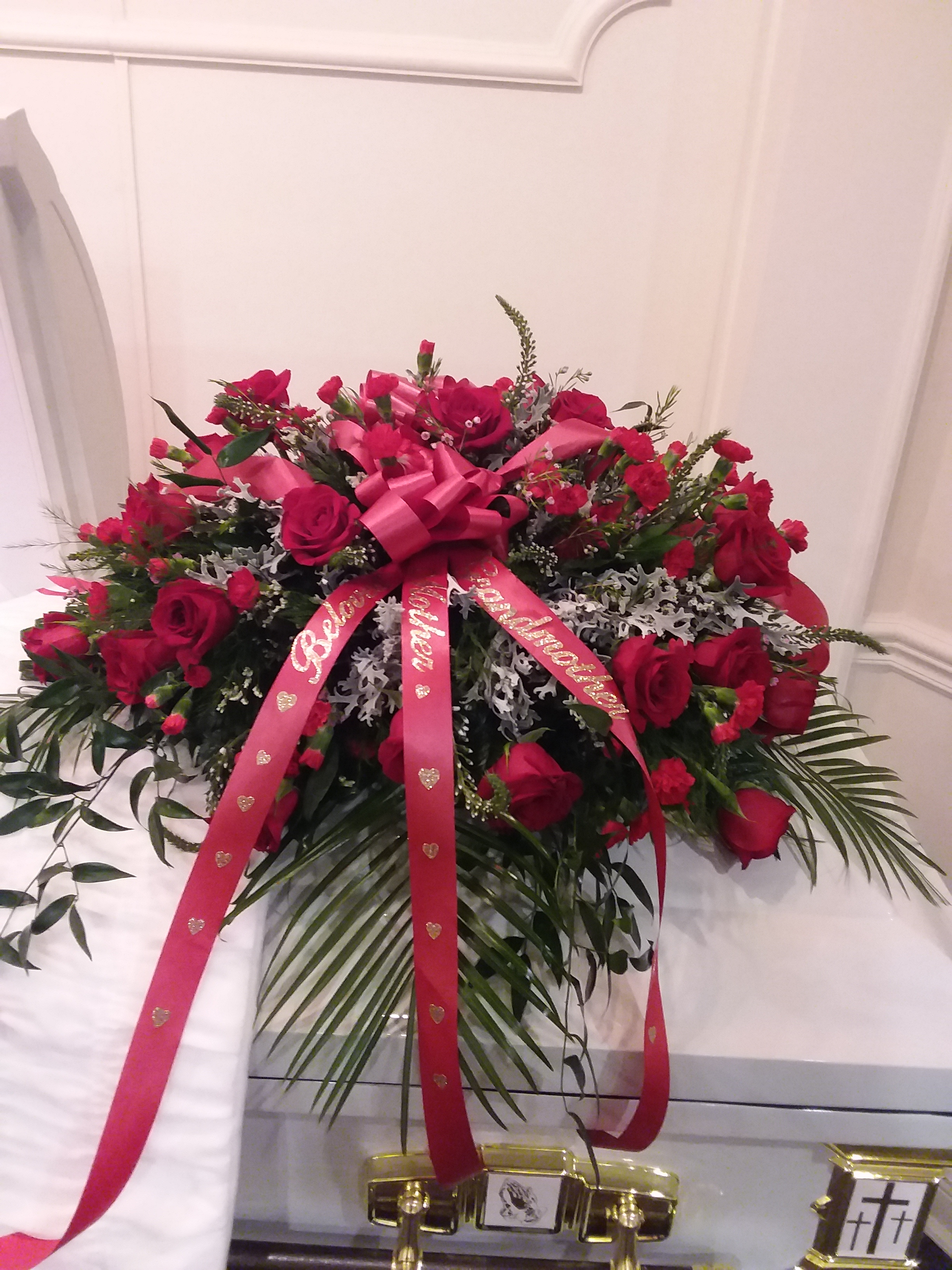Red and white Casket Spray