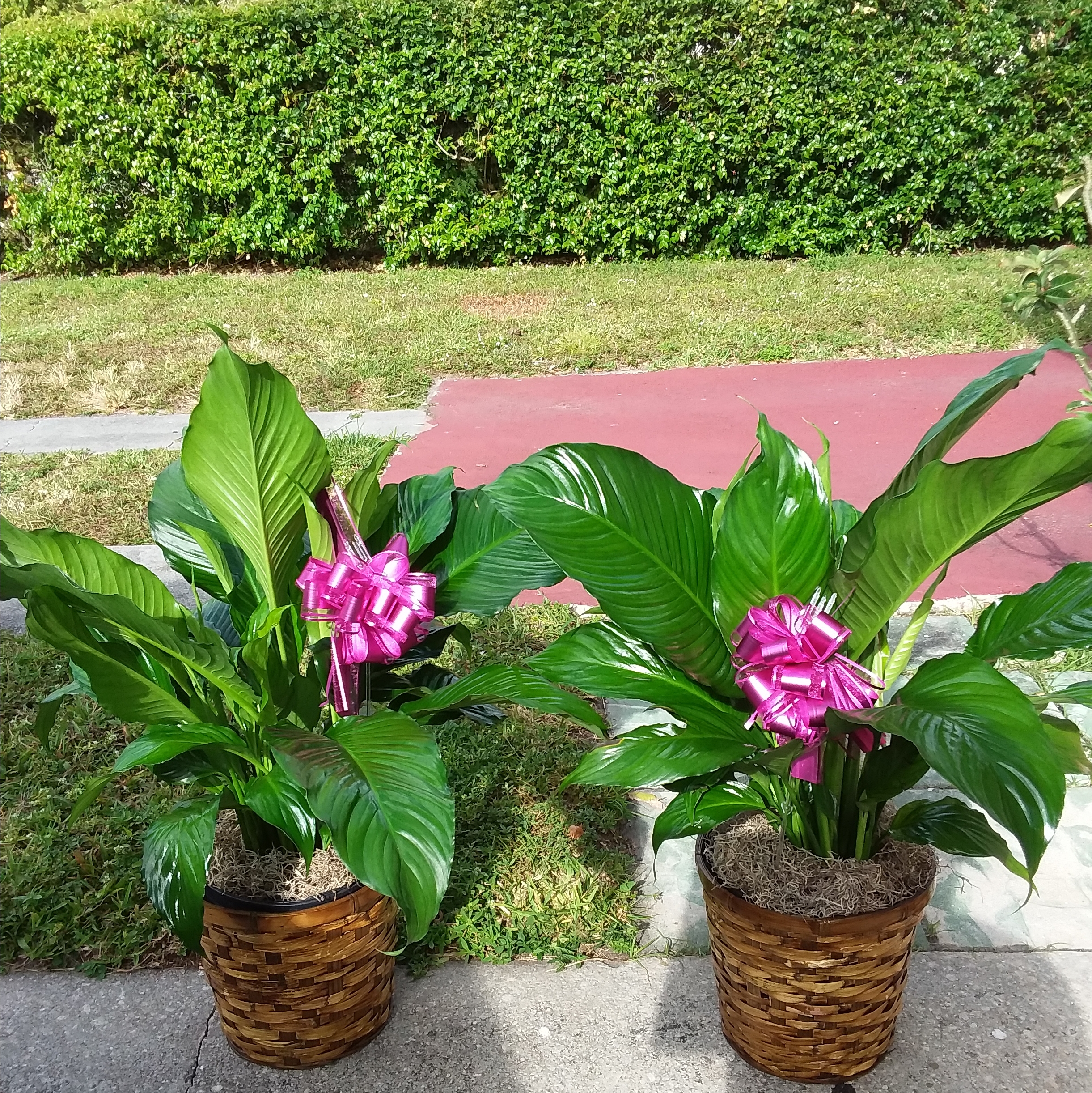 These beautiful expression of Sympathy. These Peace Lilies stand out a wicker basket is great Memorial service, Sympathy, Funerals , a church gift.price includes tax and delivery fees. We deliver to Miami-Dade and broward counties.
