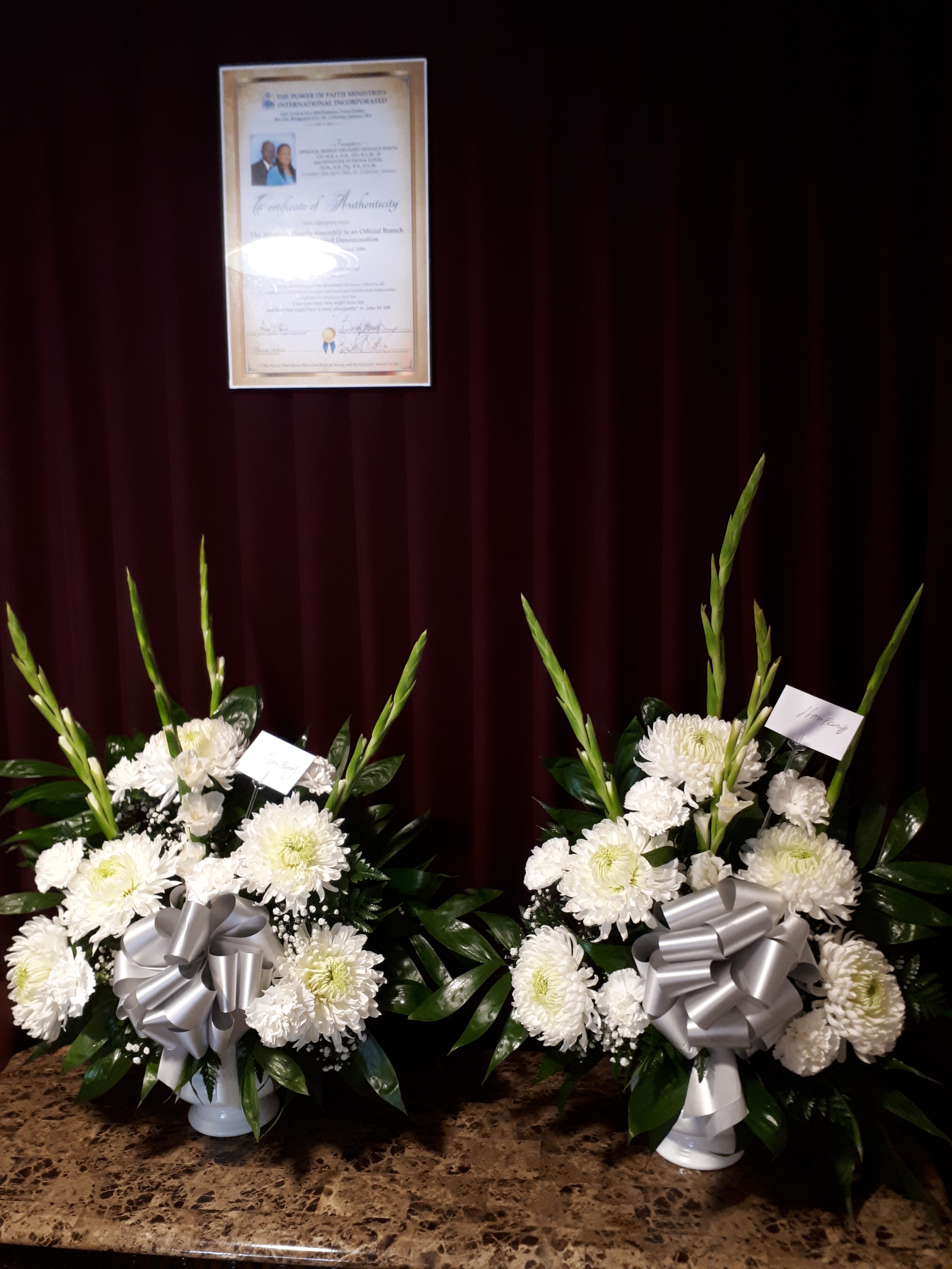 These beautiful white vase arrangements will look great beside your loved ones casket if placed on a pedestal or on the floor. PricePrice includes tax and delivery fees. We deliver to Miami-Dade and broward counties