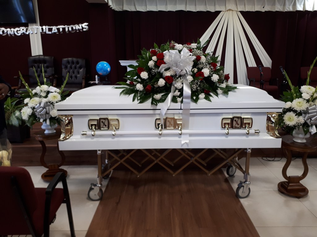 This beautiful all white casketsprsy with its beautiful fresh flowers of white Asiatic lilies, white roses, white spiders, white dendrobium orchids, white phanelopsis orchids, nestled in mixed greens beautifullydisplayed on the casket. Price includes tax and delivery fees. We deliver to Miami-Dade and Broward counties. We have contactless delivery we deliver on time to your service, no refunds or exchanges