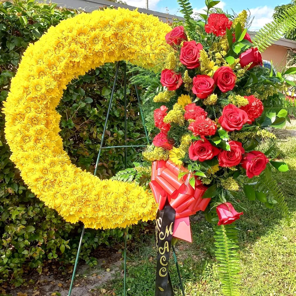 This beautiful sympathy tribute is to honor your Bahamania loved one. Available two sizes. Price includes taxes and delivery fees. We deliver to Miami-Dade and broward counties.